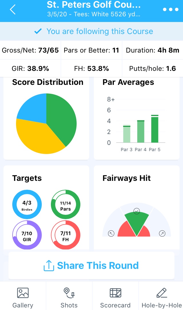 Ultimately, the first Going Low was successful. I played under my course handicap in insane conditions. (Side note: giving a player of my caliber 8 shots on St. Peters from any forward tee is insanity. The course is sneaky hard in some spots from the tips, but from the white tees it’s way too easy for 8 shots.) I’m still focused on the Quest for Par which means playing the tips, but it’s definitely fun playing up and will definitely try to mix in one round every five or so.