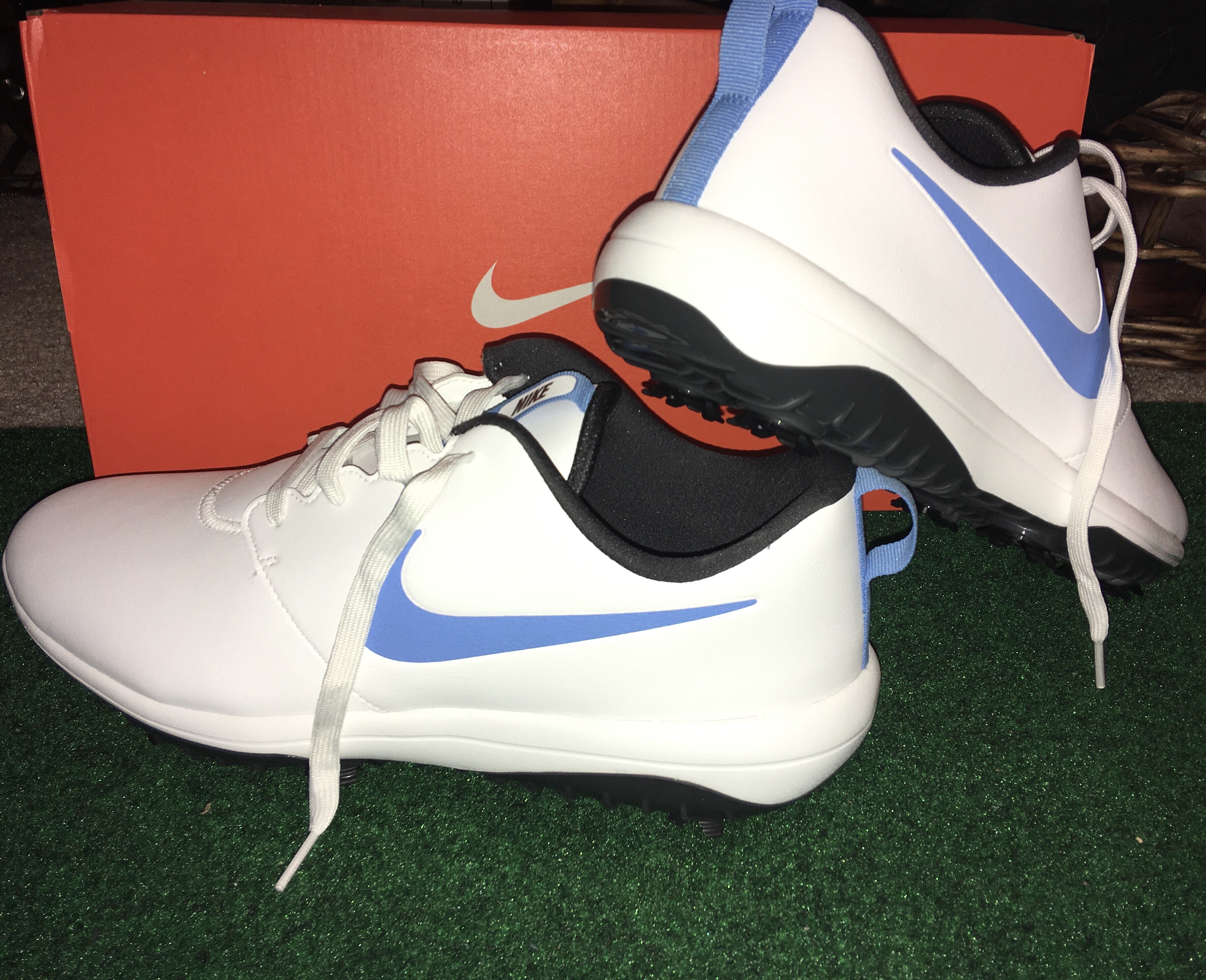 I have been using spikeless golf shoes for a long time. I always liked them because they were comfortable and well made because they were Nike. However, I had noticed recently, especially with the dead grass of winter golf, that my feet would slip out from under me sometimes and throw off my balance and compromise my strike. I also had been reading that you lose a lot of energy to the ground if you don’t dig in and drive off the ground. My feet would definitely spin more than is ideal even when I got a good grip with the spikeless shoes.