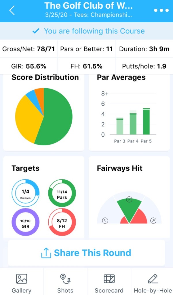 The biggest disappointment was my wedge play. My chipping and pitching were not as good as normal. If you’re breaking in a new putter, you would like more easy looks than I had today. However, there was one definite highlight with the 54-degree.