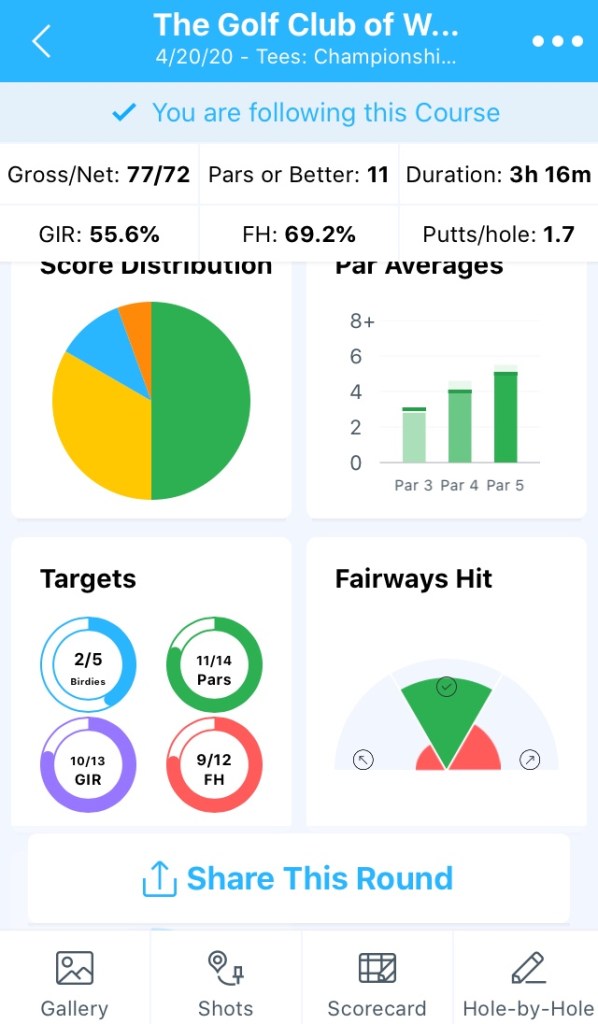 I drove the ball great and the ball striking was shockingly good for a lay-off which is why I hit 10 greens. I didn’t intend to chip and pitch more with my 60-degree when I normally use my 54-degree, but I did because of the greens, and it worked well.