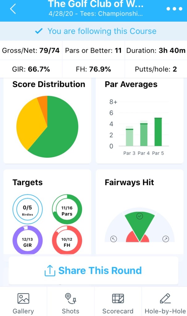Parring the last 8 holes at least made me feel somewhat better. My irons were definitely a weak spot at the beginning of the month. I couldn’t find the center. I have now hit at least 10 greens in regulation in each of my last 7 rounds and I’m striking the ball at least as well if not better than I ever have.