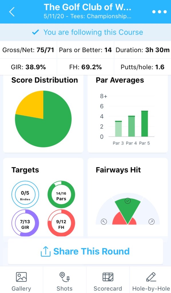 I wasn’t close to three-putting anything today, but I only really made two one-putts that could be classified as outside of tap-in range. I rolled it well today, and I am not going to get mad that the chipping disguised my putting a little today. But if I was a little better about making sure I got the ball to the hole, I might have made a couple more bogeys with longer second putts, but I would have definitely made at least a couple birdies.