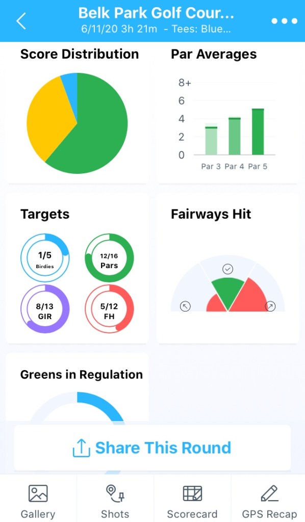 For how bad my ball striking and face control was today, I am happy with how I scored. Part of that was Belk Park doesn’t punish the right miss off the tee. If I only hit 5 fairways at some other places with those same misses, I would be re-teeing or taking some drops. I wish I had gone to the baby cut swing more. I didn’t realize how every one of them was a great ball flight and ended up over 290 yards until after the round. My 3-wood was pretty good today which helped and was still drawing which is weird when nearly nothing else would. The one 5-wood I hit also drew like always. I’m not mad about the swing causing loads of blocks today. That will happen. I just can’t compound that problem with mental errors. I just didn’t take enough club on two different par 3’s and came up woefully short. I didn’t hit a couple wedges nearly hard enough and was on the completely wrong side of the green.