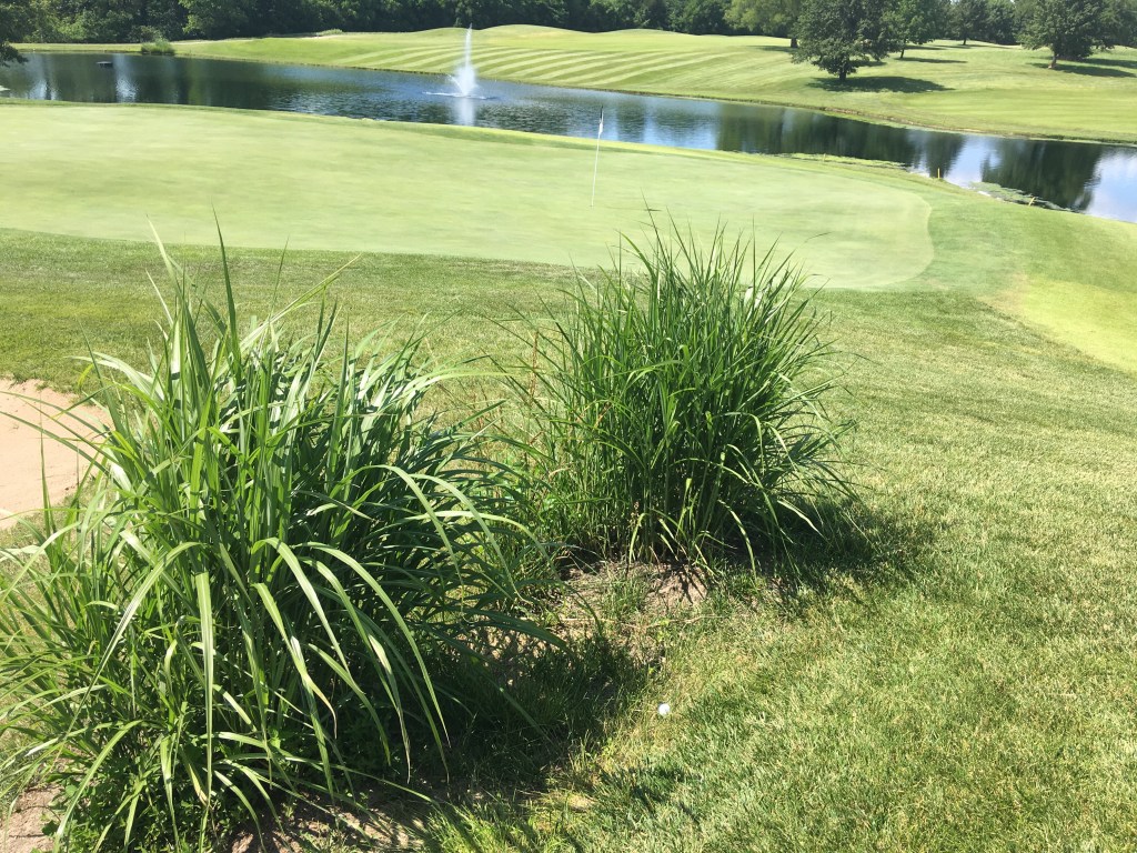 It’s a par 5 that with a good shot off the tee you have a shot at the green. I ripped a drive over the top of the hill and left myself with about 200 yards to the front. I was nervous about fatting or toeing one into the pond. I debated going 5-iron because it is downhill to the hole, but that brought the water more into play on a shaky strike and there was a slight wind into and off the left. Ultimately, after standing over the shot way too long trying to shake the nerves I absolutely crushed a 4-iron right on the sweet spot. I pulled it a little which is the bailout. It hit about pin high left in the “fairway”, but I couldn’t see how far it bounced and rolled up the hill in the rough.